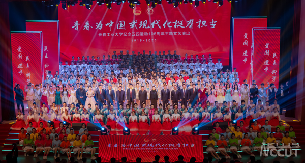 表彰大会结束后,与会领导与师生一同观看长春工业大学纪念五四运动106周年“青春为中国式现代化挺膺担当”主题文艺演出。演出以赓续五四精神、厚植家国情怀为主线,通过“风卷云涌浪淘沙”“挺膺向北展担当”“青春奋进新征程”三个篇章的精彩表演,呈现一堂别开生面的音乐思政课。广大青年学生在沉浸式体验中接受思想引领,立志做有理想、敢担当、能吃苦、肯奋斗的新时代好青年,为学校事业高质量发展贡献青春力量!