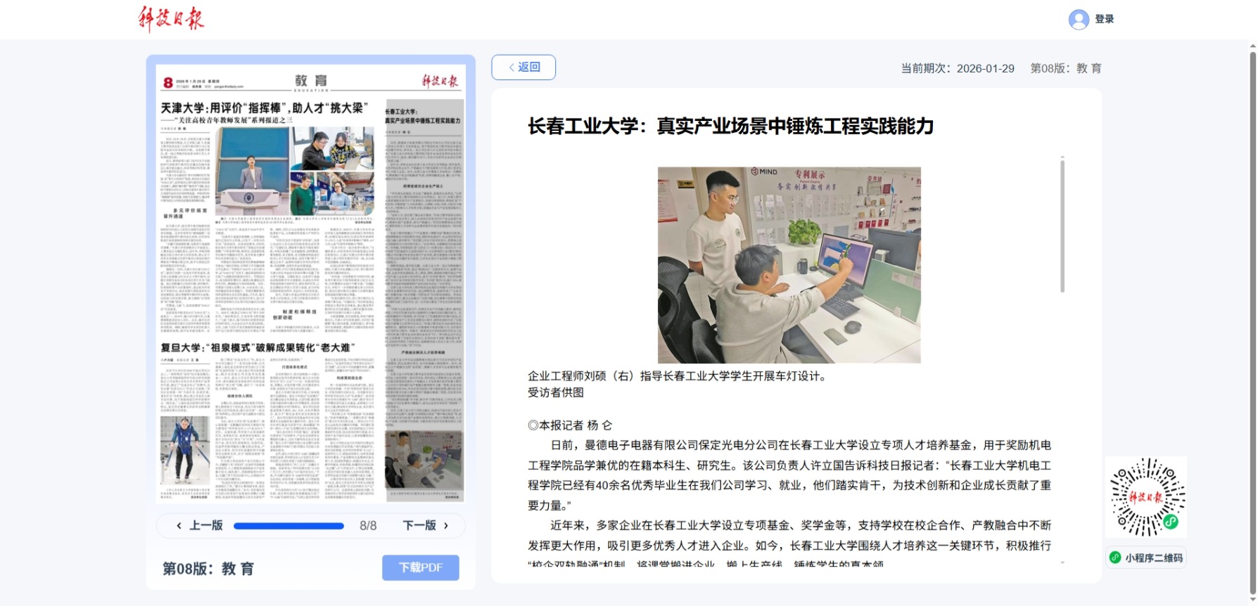长春工业大学专业设置精准对接长春市乃至吉林省的产业升级需求,把企业真实项目、技术标准融入课堂教学。如今,该校正以产教融合这把“金钥匙”,破解人才培养与企业需求脱节的难题。