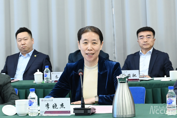 李晓杰在讲话中,对学校的热情接待和对松原的支持表示感谢。她说,松原市深入落实省委“一主六双”高质量发展战略和培育“四大集群”、发展“六新产业”、建设“四新设施”发展新格局,聚焦发展新质生产力,全力推动传统工业转型、新兴产业培育,产业发展方向与长春工业大学的科研方向高度吻合,校地合作空间广阔、前景可期。希望校地双向奔赴、优势互补,在新能源、新材料、石油化工等产业领域深化合作,推动更多科技成果在松原转化,助推松原延长产业链,提升价值链。诚邀长春工业大学毕业生到松原就业创业,市委、市政府将提供最好的资源、最佳的条件和最优的服务,让广大学子感受到家的温暖。
