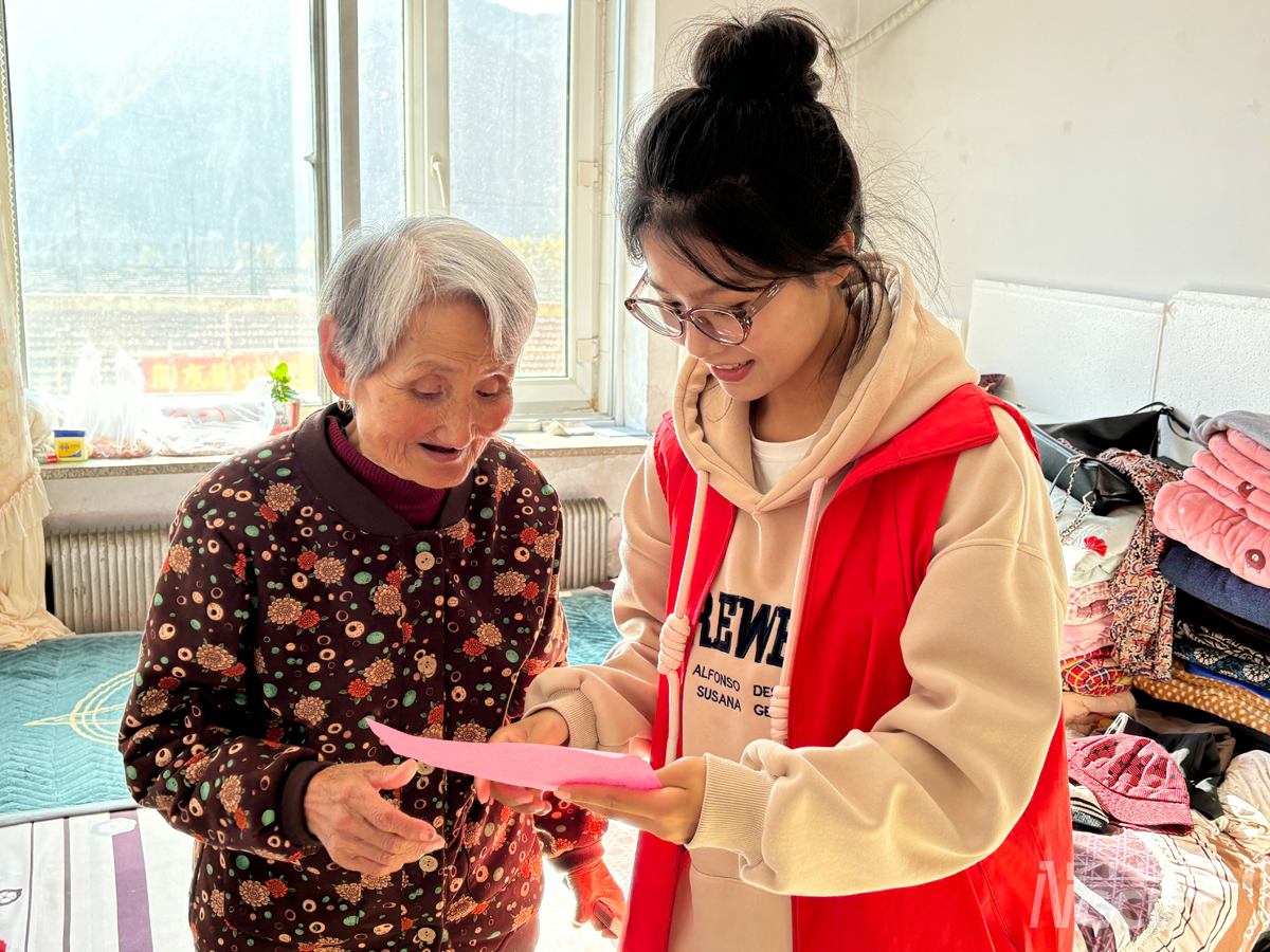 我校西部计划志愿者魏晓萱在临江市大栗子村进行志愿服务