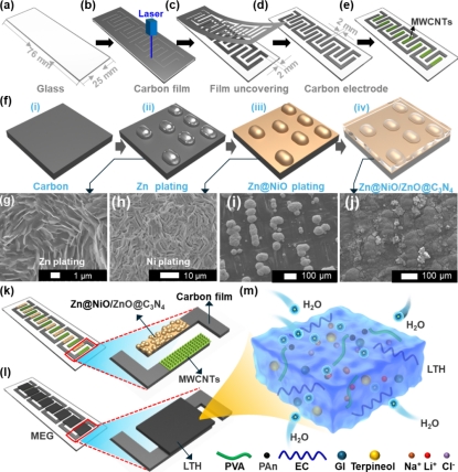 针对水伏器件在低温环境下易结冰、离子迁移受阻的难题,课题组提出“激光雕刻hygroscopic hydrogel阵列”方案,开发出可在零下环境工作的MEG。器件以激光雕刻碳膜为电路框架,改性低温水凝胶为吸湿材料,构建不对称电极,并创新性引入“振荡电路理论”解释吸湿-蒸发-离子迁移对输出电流的影响。