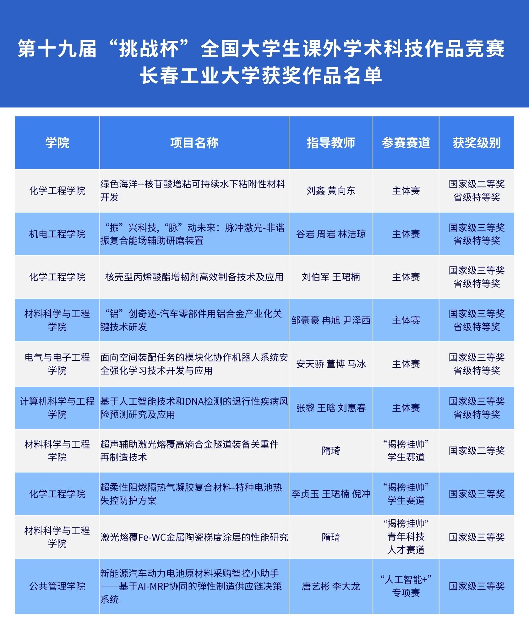 新闻网讯(通讯员 万杨)10月31日至11月3日,由共青团中央、中国科协、教育部、中国社会科学院、中国工程院、全国学联和江苏省人民政府共同主办,南京大学承办的第十九届“挑战杯”全国大学生课外学术科技作品竞赛终审决赛在南京大学仙林校区举办。经过激烈角逐,我校共获得国家级奖项10项,其中,主体赛获二等奖1项、三等奖5项;“揭榜挂帅”擂台赛获二等奖1项、三等奖2项;“人工智能+”专项赛获三等奖1项。实现了国奖覆盖全部赛道,专项赛首度入围并取得历史性突破的参赛目标,获奖数量再创新高居全省前列。