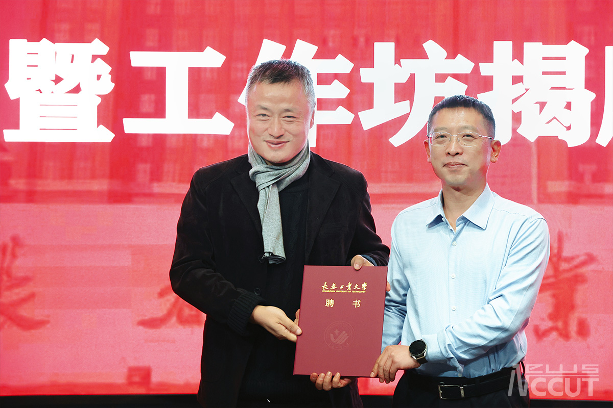 仪式上,付跃刚为唐克扬颁发客座教授聘任证书。唐克扬与新闻与传播学院院长管媛辉共同为长春工业大学“空间与媒体大师工作坊”揭牌。随后,唐克扬致辞对学校的聘任表示感谢,并介绍了自己的专业方向和研究心得,他表示今后在教学、科研、指导学生、工作坊建设等方面为学校的发展作出贡献。