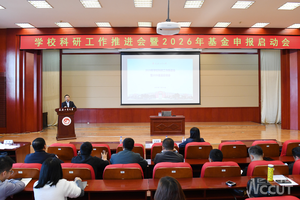 新闻网讯(通讯员 马辉)11月14日,学校在南湖校区学术报告厅召开科研工作推进暨2026年基金申报启动会。校长付跃刚出席会议并讲话,要求全校上下要充分认清高等教育发展的新形势新任务,进一步提高认识,把科研工作作为生存发展的“生命线”,创新举措,以科研突破引领学校事业发展。