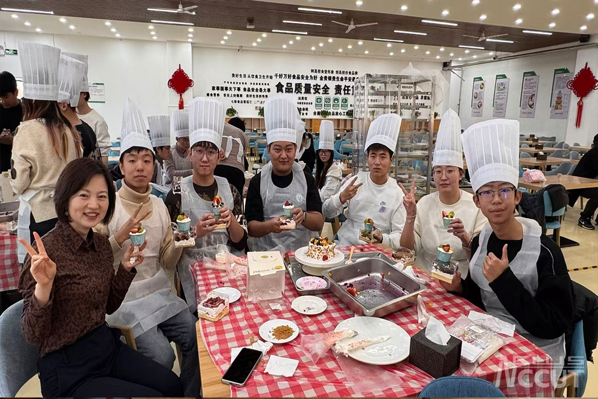 新闻网讯(通讯员 房琬婷)为深入落实“五育并举”教育理念,构建全面人才培养体系,11月21日,学校将劳动教育课堂从教室搬到生活现场,在南湖校区食堂三楼开设了一堂香气四溢的烘焙体验课,以创新形式推动劳动教育走深走实。本次活动由学生素质教育学院(创新创业教育学院)与后勤处联合举办,吸引了来自机电工程学院、电气与电子工程学院、国际教育学院的本科生和国际中文教育中心的留学生代表,总计 40 余人参加。学校副校长胡刃锋,学校党委常委、宣传部部长王亚坤及相关职能部门和学院党政负责人观摩活动,并与学生亲切交流。