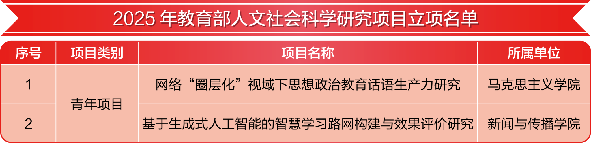 获批教育部人文社科项目2项,立项总数在省属高校位列前茅。