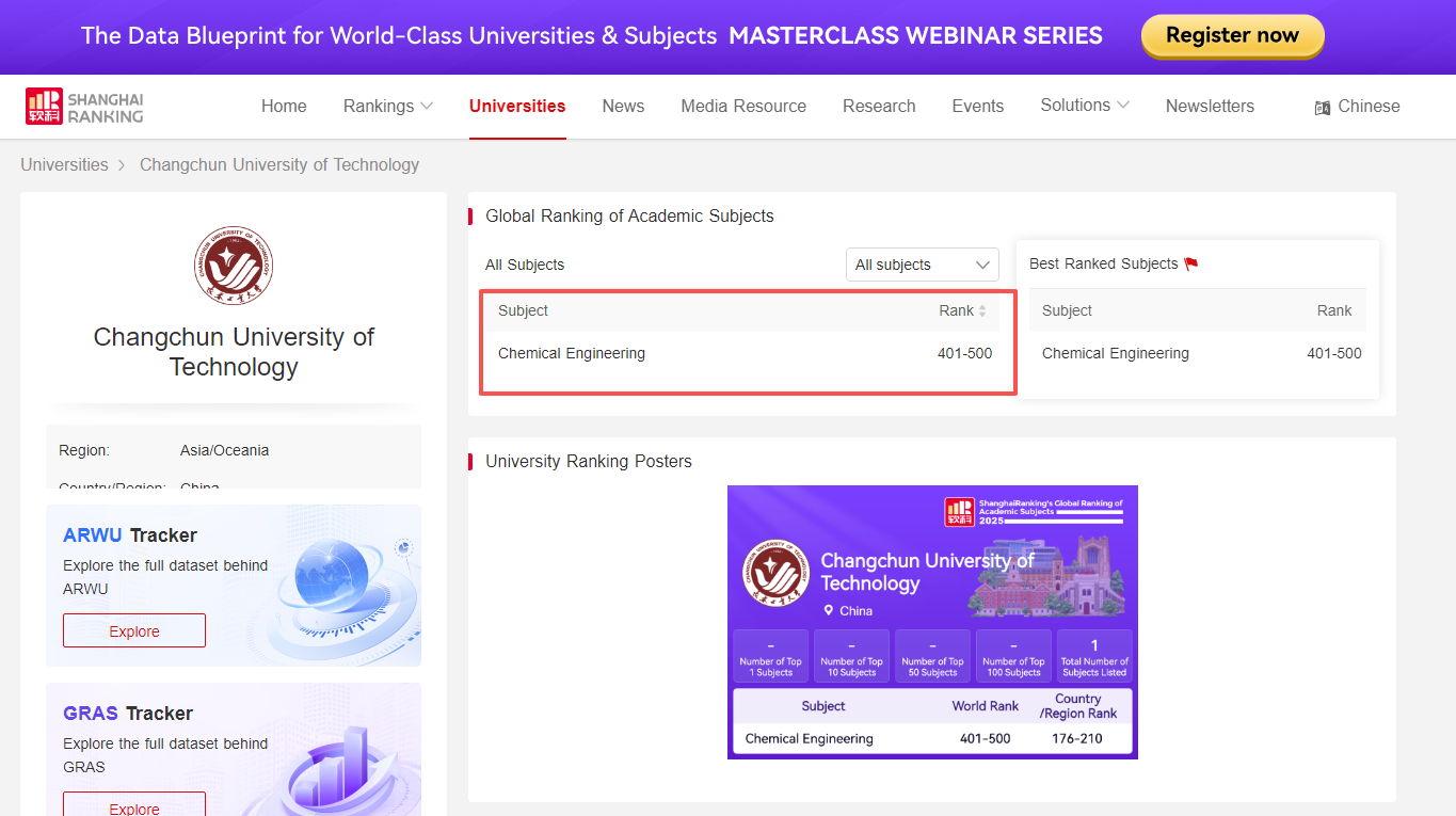 学科国际影响力显著增强。化学工程学科入选吉林省特色高水平学科“优势特色A类”,并且首次跻身软科世界一流学科排名前500名,标志着学院学科建设迈入国际化新阶段。学院顺利完成北湖校区整体搬迁,办学空间和硬件条件得到极大改善,为学科长远发展奠定了坚实的硬件根基。学院拥有高分子材料合成技术国家地方联合工程实验室、教育部合成树脂与特种纤维工程研究中心2个国家级科研平台,吉林省碳纤维产业创新中心等12个省级科研平台,仪器设备总值近2亿元,为学科建设提供了强有力的支撑。