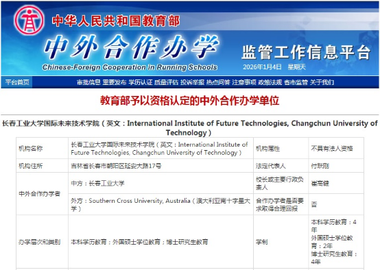 2025年,在前期良好的沟通与交流的基础上,学校与澳大利亚南十字星大学申请中外合作办学机构。在学校党委的坚实领导下,工作专班全体成员展现出高度的责任感和奉献精神,最终如期递交省教育厅,获得省内专家的高度认可,并成功获批,实现了我校中外合作办学机构从零到一的飞跃,提升了学校的国际化办学水平。