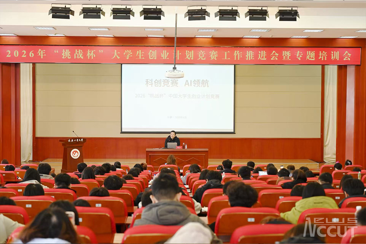 新闻网讯(通讯员 万杨 庄园)4月8日,学校在南湖校区学术报告厅举办2026年“挑战杯”大学生创业计划竞赛工作推进会暨专题培训会。校长付跃刚、校党委副书记吴成章出席会议。党委学生工作部、学生素质教育学院(创新创业教育学院)、科学研究处、研究生院、教务处、承办单位数学与统计学院等部门(单位)负责人,各学院党委副书记、分管科研工作副院长、团委书记及部分挑战杯项目指导教师、学生负责人300余人参加会议。
