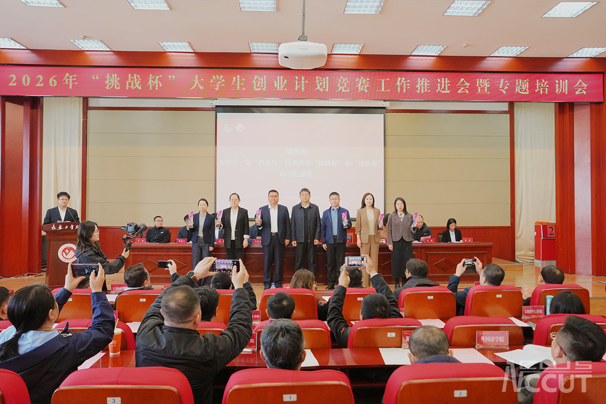 会上,付跃刚为2025年“挑战杯”国赛获奖项目指导教师颁奖;吴成章为第十一届“挑战杯”校赛获得“挑战杯”和“优胜杯”的学院颁奖;与会领导为第十一届“挑战杯”校赛获得优秀组织单位的学院颁奖;学生工作部部长孙兆龙宣读《关于表彰第十一届“挑战杯”长春工业大学大学生课外学术科技作品竞赛获奖集体和个人的决定》,公布《第十九届“挑战杯”全国大学生课外学术科技作品竞赛获奖项目指导教师名单》;团委书记邵捷做2026年“挑战杯”大学生创业计划竞赛工作部署,他全面总结了上一届“挑战杯”赛事取得的突破性成绩,对2026年“挑战杯”赛事的赛程安排、评审机制、项目培育等重点工作进行了布置。