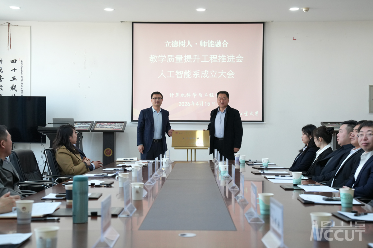 新闻网讯(通讯员 刘惠春)4月15日上午,计算机科学与工程学院在学院会议室举行“立德树人・师能融合”教学质量提升工程推进会暨人工智能系成立大会。校长助理李玉峰与计算机科学与工程学院党委书记周文明共同为人工智能系揭牌,标志着计算机相关学科建设及人工智能专业进入全新发展阶段。优秀校友纷纷通过视频寄语,为人工智能系的成立送上诚挚祝福。