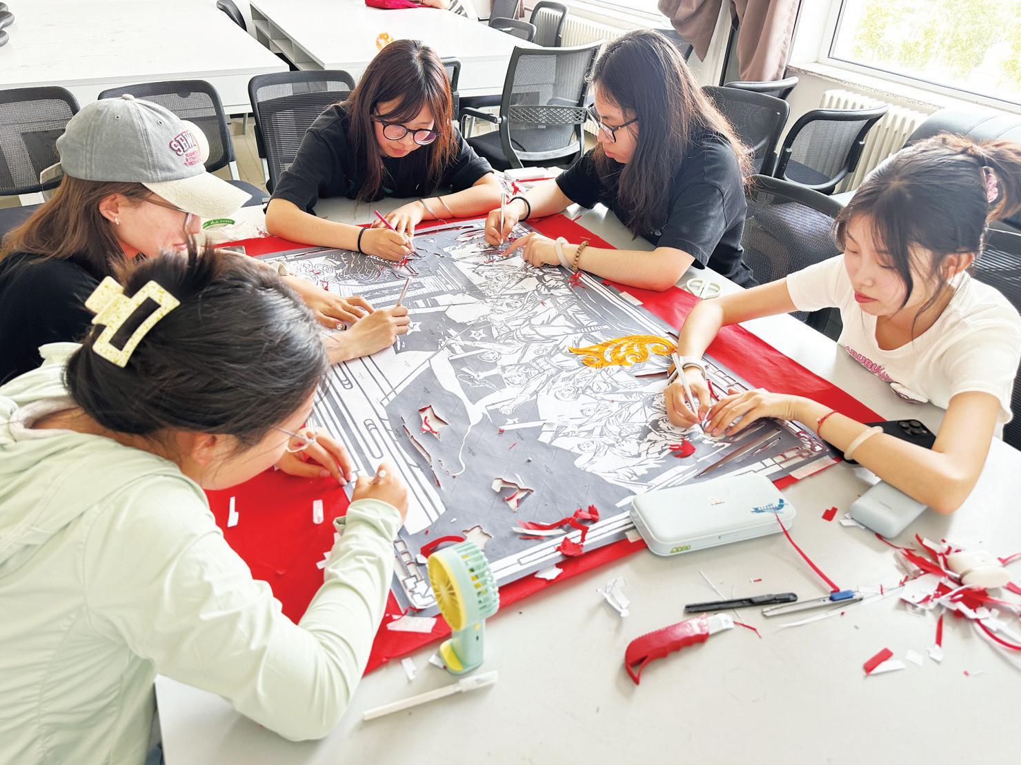 日前,长春工业大学举办“红韵长卷,纸艺传承”大型主题剪纸艺术作品展。14组巨型剪纸作品凝结青春匠心与红色信仰,推动了思想政治教育从课堂延伸到展厅,让红色记忆在青年群体中焕发新生、激发热情。