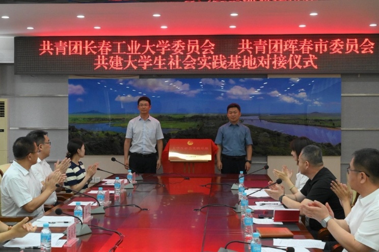 7月4日下午,共青团长春工业大学委员会与共青团珲春市委员会共建大学生实践基地对接仪式在珲春市人民政府举办。仪式上,长春工业大学团委书记邵捷与珲春团市委书记金文天共同为实践基地揭牌,西部计划志愿者代表、实践团队代表作交流发言。
