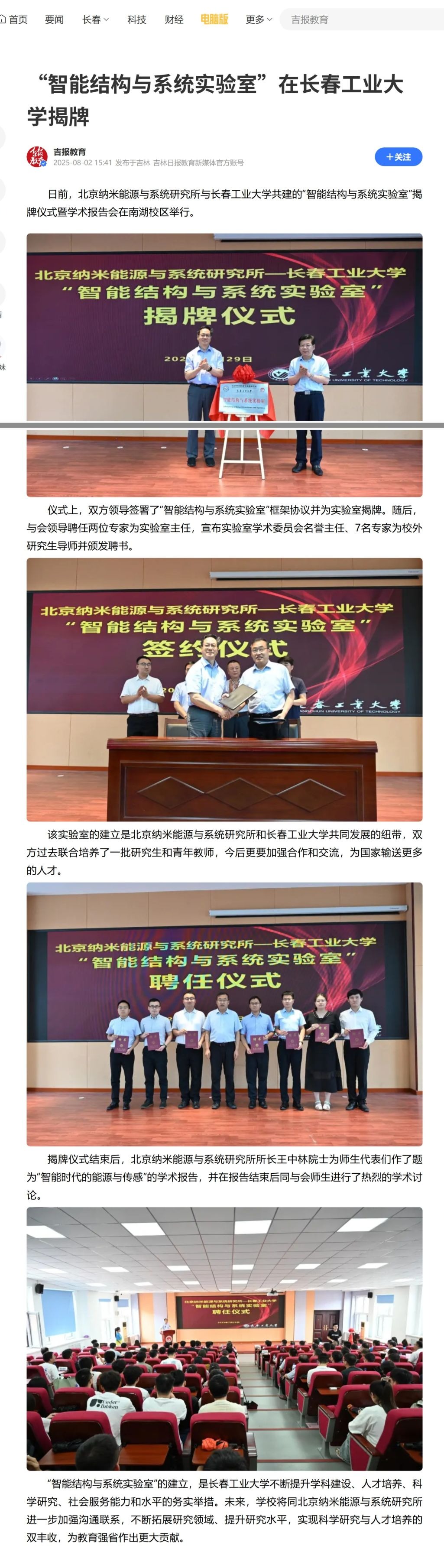 【媒体工大】吉报教育:“智能结构与系统实验室”在长春工业大学揭牌