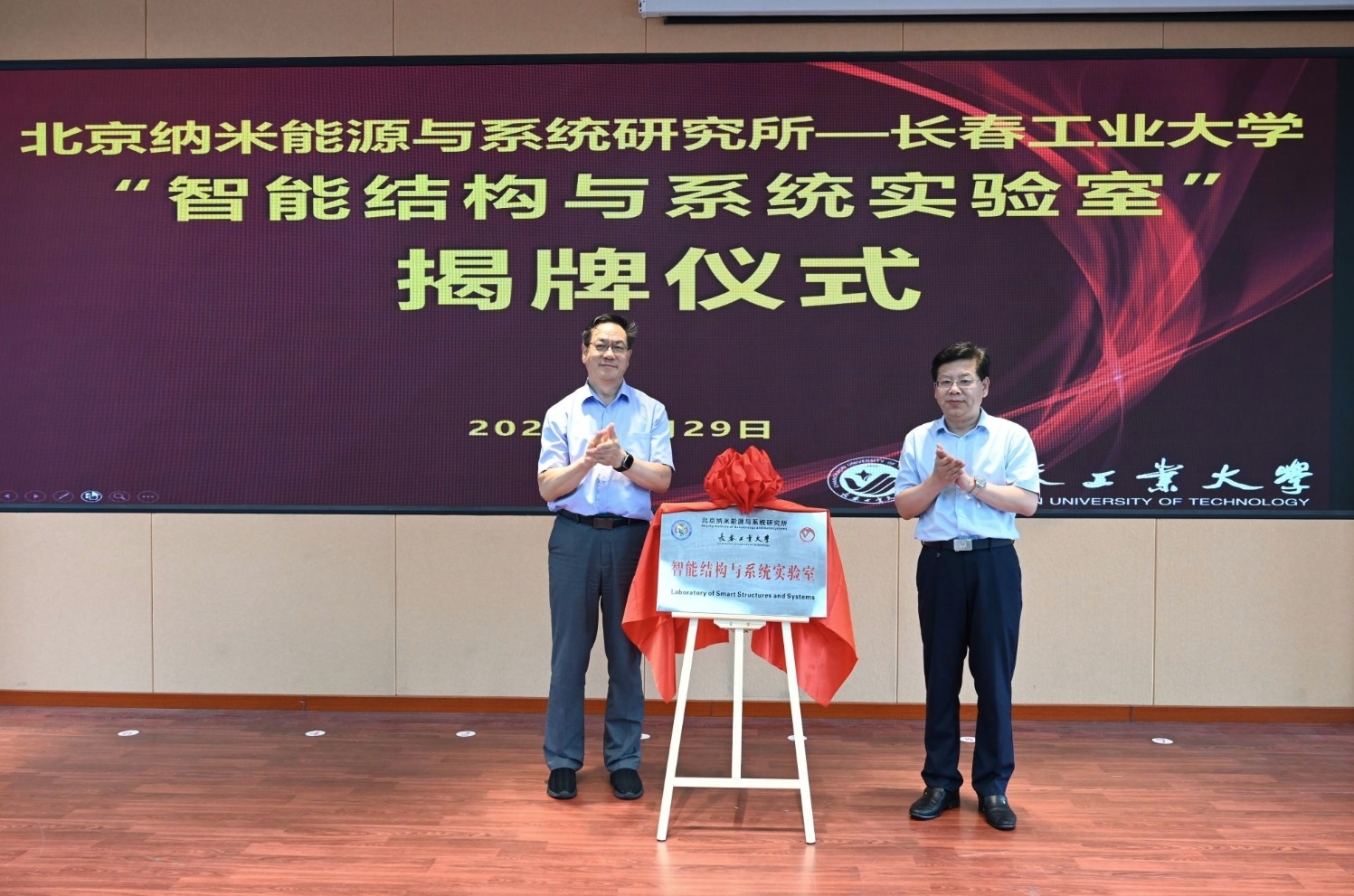 近日,北京纳米能源与系统研究所与长春工业大学共建的“智能结构与系统实验室”揭牌仪式暨学术报告会在长春工业大学南湖校区举行。
