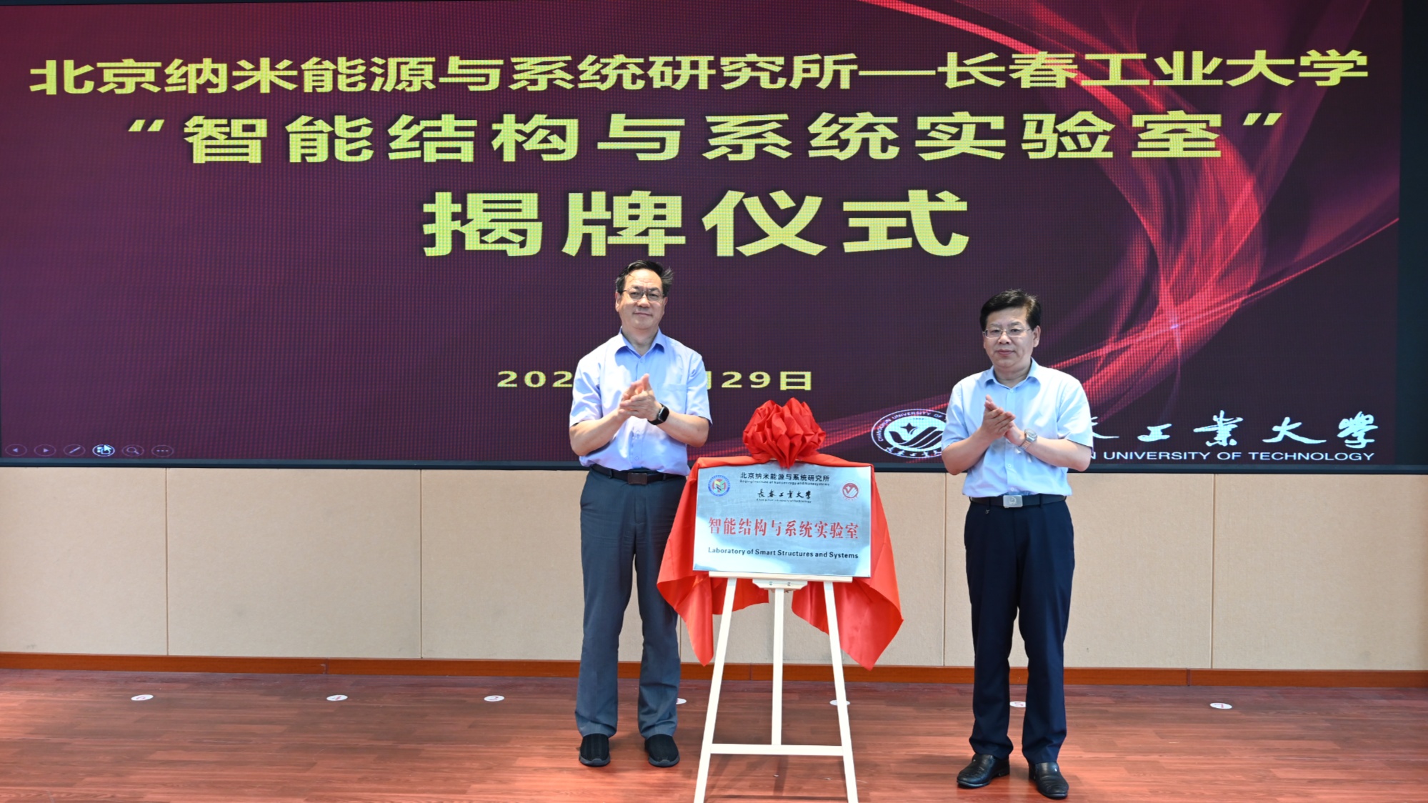 7月29日,北京纳米能源与系统研究所与长春工业大学共建“智能结构与系统实验室”揭牌仪式暨学术报告会在南湖校区举行。北京纳米能源与系统研究所所长王中林院士出席活动并作学术报告。省教育厅副厅长周正朝、省科技厅副厅长付帅,长春工业大学党委书记陈权、校长张明耀、党委副书记李东玲,北京纳米能源与系统研究所产业办主任程廷海、省科技厅基础研究与科研条件建设处处长张永洪等出席活动。李东玲主持揭牌仪式。机电工程学院党政负责人、相关部门负责人、青年教师及部分研究生参加仪式并聆听报告。