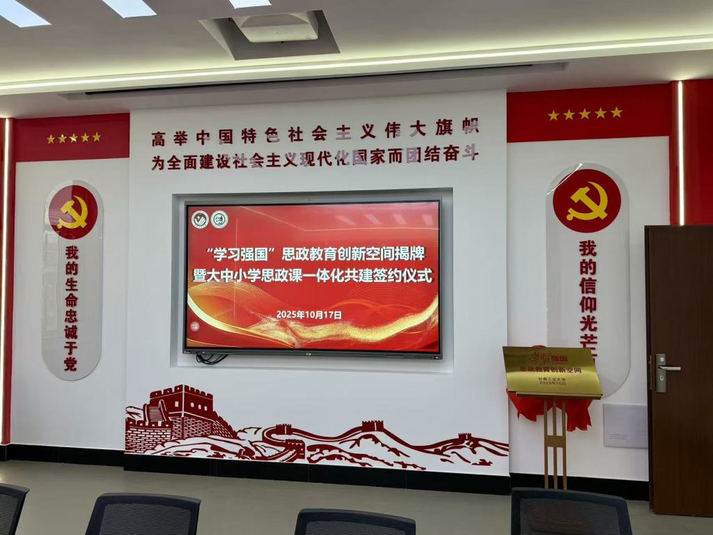 10月17日,“学习强国”思政教育创新空间揭牌暨大中小学思政课一体化共建签约仪式在长春工业大学北湖校区马克思主义学院举行。