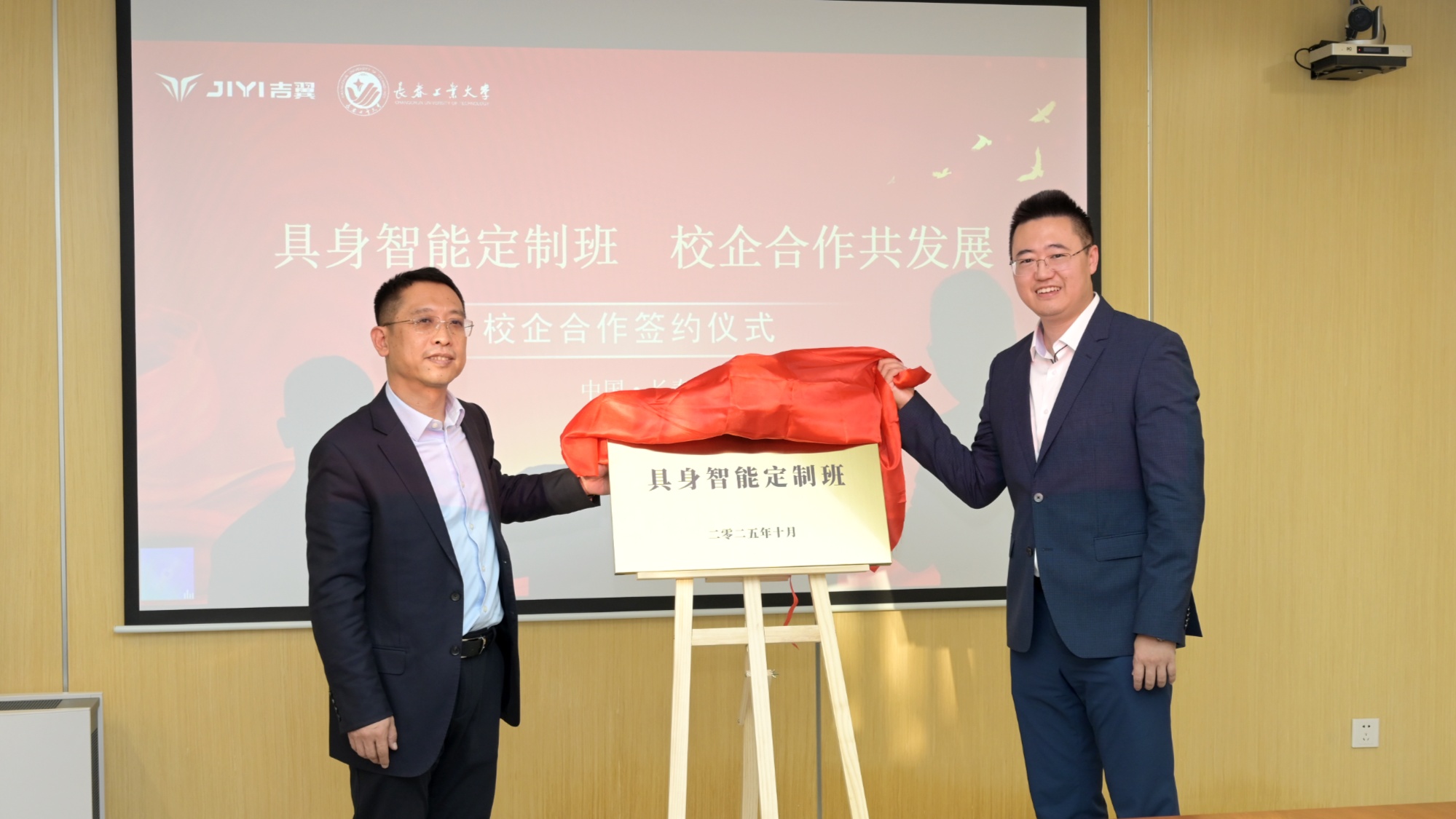 长春工业大学与吉林省吉翼具身智能机器人有限公司、长春捷翼汽车科技股份有限公司分别签署战略合作协议。校企双方将共同建设“具身智能产业技术实验室”,围绕吉林省重点产业技术瓶颈,共同申报国家级、省级科研项目及企业委托课题,重点开展具身智能在智能产线升级、新能源装备运维、车载智能交互等领域的应用研究。建立联合成果转化平台,推动实验室科研成果转化。双方还将共建具身智能定制班,开展硕博士联合培养,建立产教融合实训基地,实行“校内导师+企业导师”双导师制,引导更多优秀人才、高端人才留吉就业创业,服务吉林省在人工智能与机器人融合的前沿领域迈出坚实步伐。