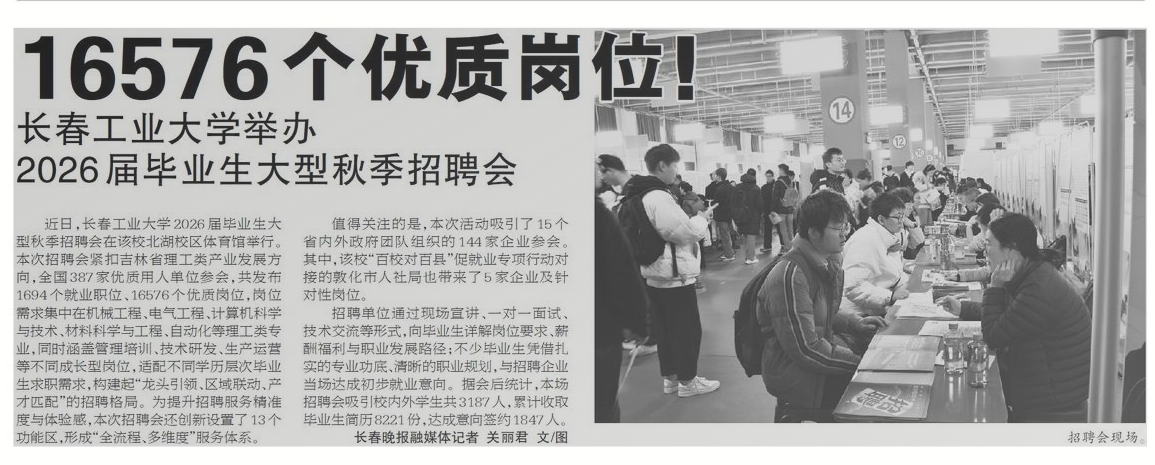 【媒体工大】长春晚报:长春工业大学举办 2026届毕业生大型秋季招聘会