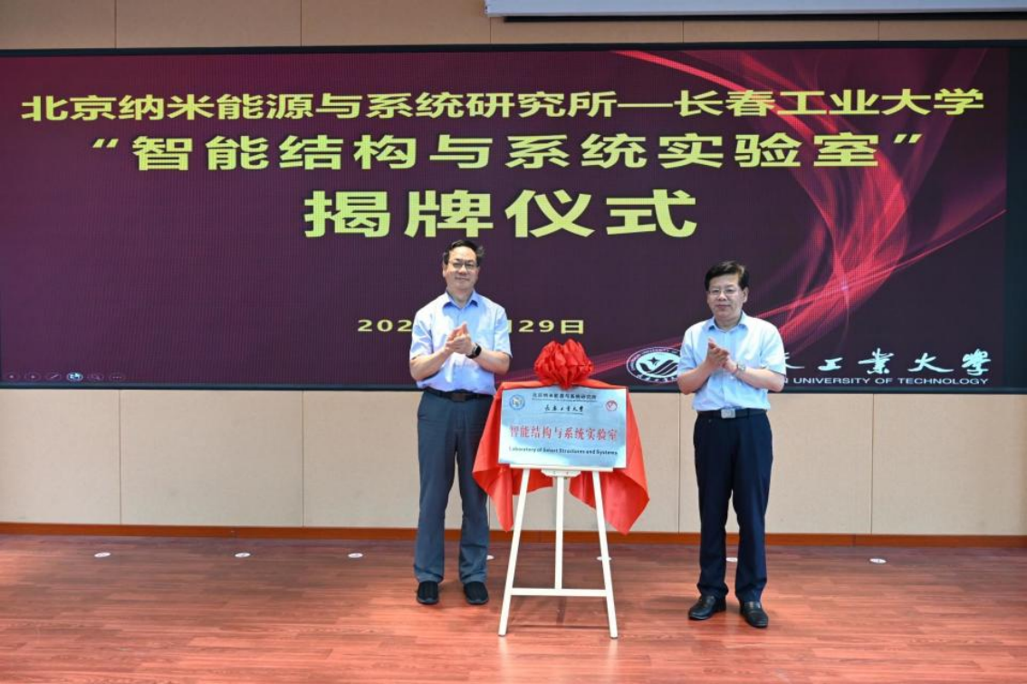 日前,北京纳米能源与系统研究所与长春工业大学共建的“智能结构与系统实验室”揭牌仪式暨学术报告会在南湖校区举行。
