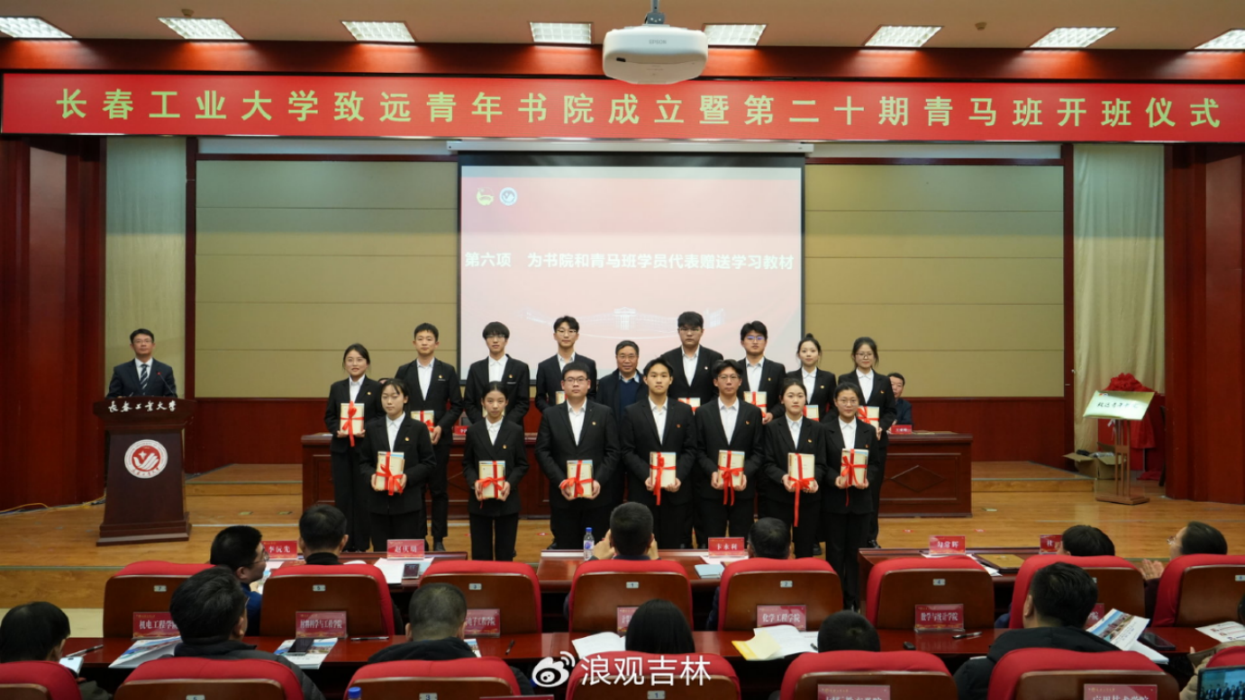 校党委副书记李东玲为致远青年书院导师团颁发聘书;李廷吉为致远青年书院及青马班学员代表赠送学习教材;党委常委宣传部部长王亚坤宣读《长春工业大学致远青年书院首期培训班培养方案》;团委书记邵捷宣读《关于成立长春工业大学致远青年书院的决定》;长春致远新能源装备股份有限公司运营副总经理,机电工程学院97级校友勾常辉与数学与统计学院学生迟雯博分别作为导师代表和学员代表作交流发言。
