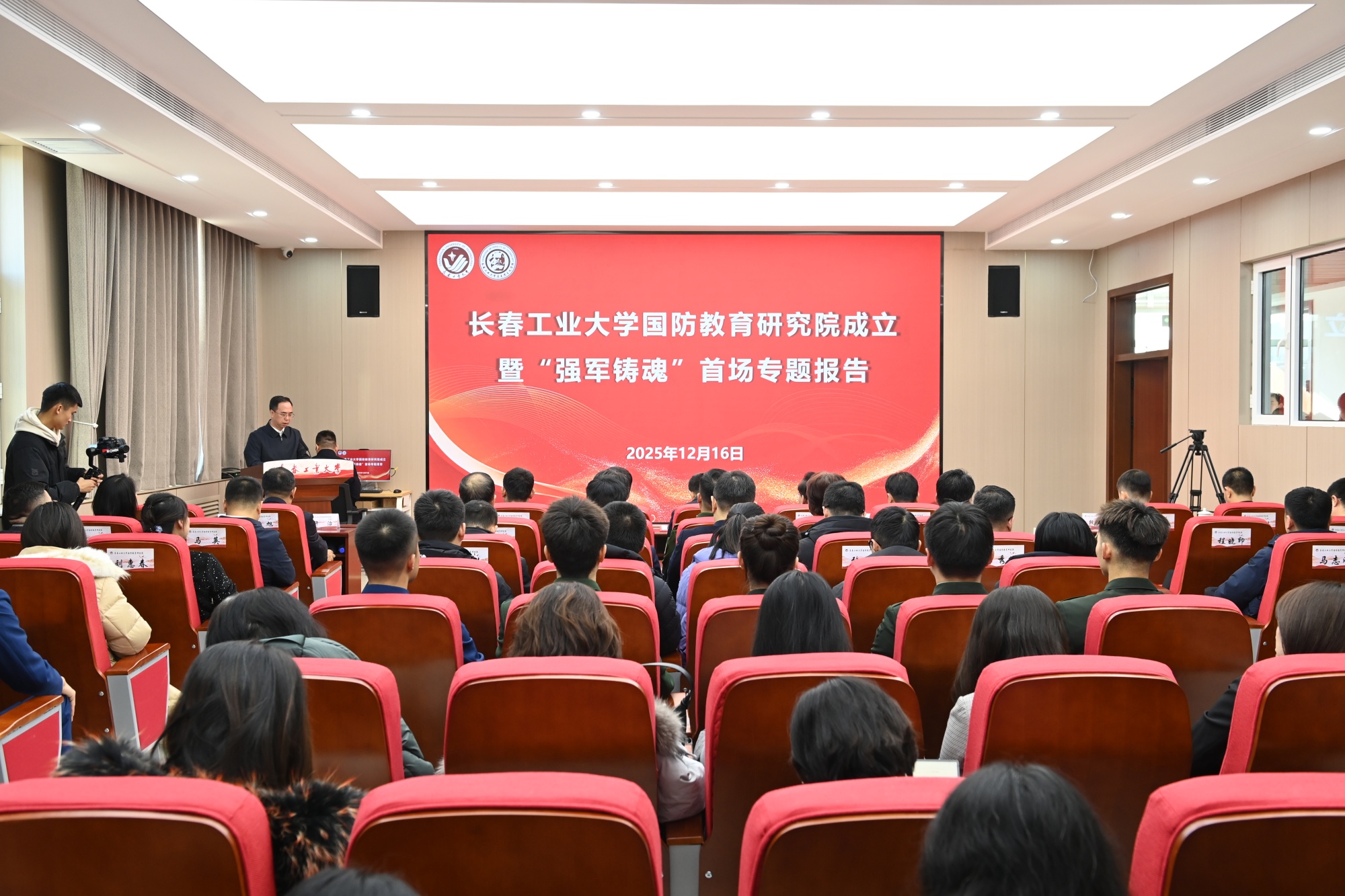 12月16日上午,长春工业大学国防教育研究院成立暨“强军铸魂”首场专题报告会在北湖校区举行。