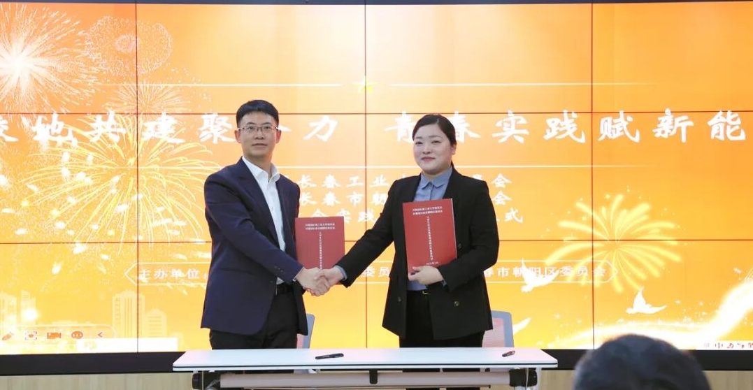 仪式上,学校团委书记邵捷与共青团长春市朝阳区委书记吕爽作为校地双方代表签署共建合作协议,学校致远青年书院学员王鑫月等3名同学结合自身实践经历作交流分享。