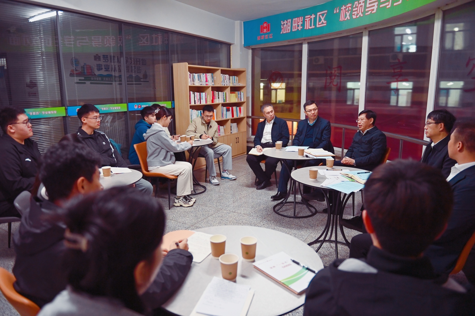 学校以湖畔社区为核心,实施“1512”内涵式建设提质计划,打造“求实交流空间”,常态化开展“校领导与学生面对面”“书记话成长”“校长谈学风”等品牌活动,书记、校长带头深入社区,与学生“面对面”,带动院系班子、机关干部、青年教师、专兼职辅导员等常态化下沉社区,充分发挥大学生学业帮扶指导中心、“银龄”辅导员工作站等平台作用,“五长”协同发力,打通育人“最后一公里”。