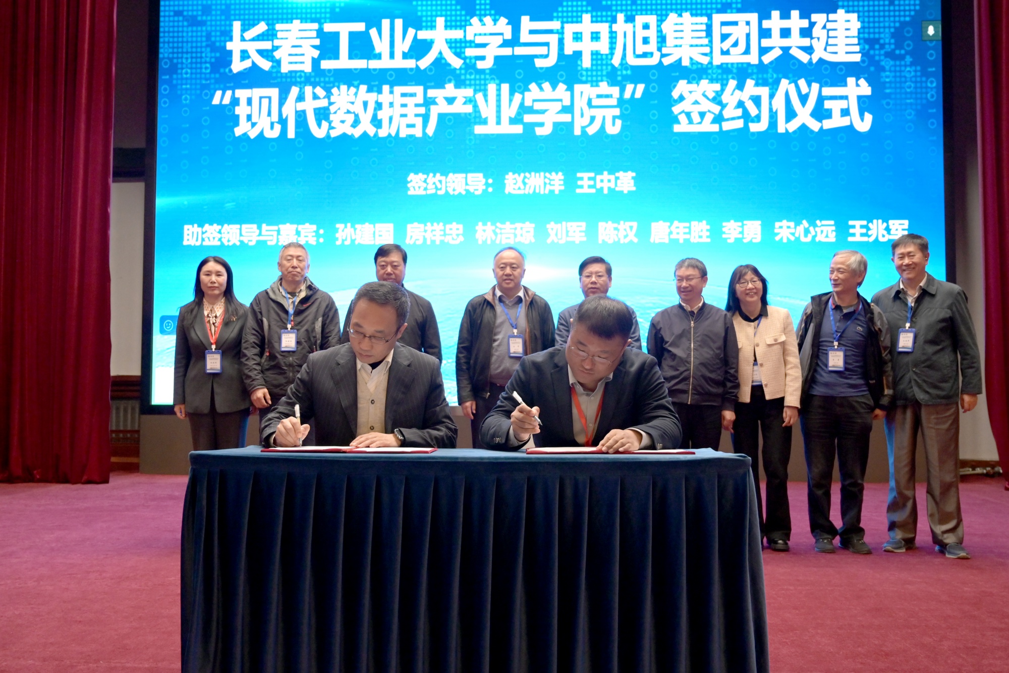 会上,长春工业大学与中旭集团签订了“现代数据产业学院”共建协议。校企双方将围绕吉林省电力、汽车、装备制造、生物医药、低空经济等支柱产业的数据产品工程化、数据分析与智能化升级转型,共建“长春工业大学现代数据产业学院”,在技术研发、成果孵化、联合攻关、人才培养、课程开发、产教融合、设备共享等领域加强合作,实现优势互补、平等互利。
